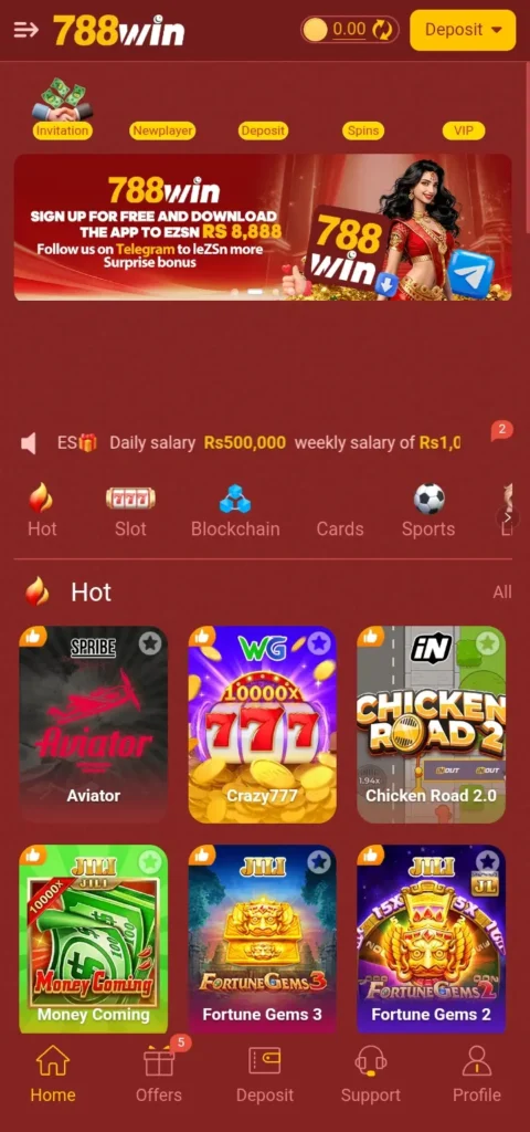 788Win Game is a Pakistani online gaming platform for Android users that offers a variety of games, including casino-style and real-money games. The app allows players to register, play games, deposit funds, and withdraw earnings directly from their mobile devices. It is known for its user-friendly interface, fast transactions, and secure payment options, making it popular among users who enjoy mobile gaming with the possibility of earning rewards.