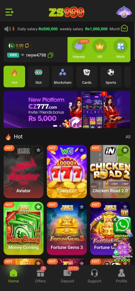 One of the major strengths of ZS999 Game is its user-friendly design. Players can easily access gameplay options, account details, and wallet features without confusion.the game supports fast loading times, which means users do not have to wait long to start playing. Furthermore, it is compatible with most Android devices, ensuring wider accessibility. Another important feature is the availability of multiple game modes that keep users engaged for longer periods.